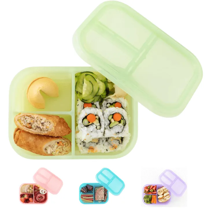 Bumkins Bento Boxes make it easier to pack a balanced meal. Sections make it easy to portion control fruit, vegetables, proteins, and grains. The boxes are designed for easy packing and portability, making them convenient for busy families. They fit into lunch bags, totes and backpacks and reduce the need for multiple containers, simplifying cleanup.