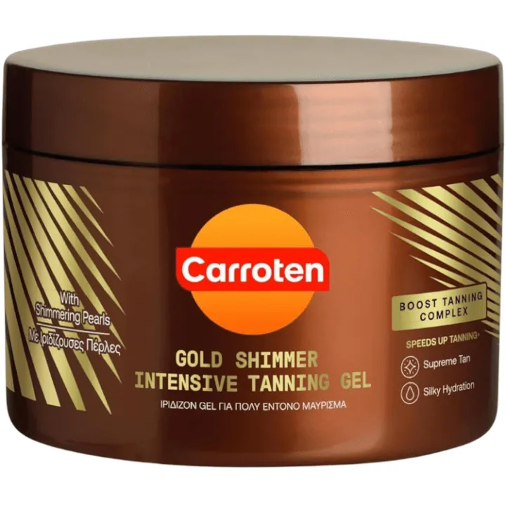 Achieve an immediate sun-kissed tan with an advanced tanning system featuring carrot and coconut oils. This intensive formula accelerates tanning for a deep, rich, radiant color. Enjoy a smooth application with the Carroten Gold Shimmer Tanning Gel, optimized for quick results at the beach.