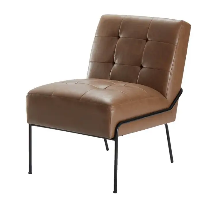 This living room accent chair will add a modern touch with its sleek metal frame and beautiful upholstery. The stain resistant fabric is as smooth as it is stylish and comfortable. Offered in leather, velvet, and other upholstered fabrics to fit any style. The pintuck feature will add a level of sophistication that will awe your guests.