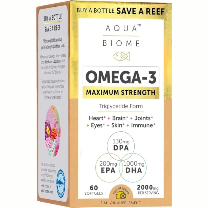 Experience the ultimate level of whole body wellness with Aqua Biome Maximum Strength and help save coral reefs, too. This formula contains our highest potency blend of an optimal ratio of DHA, EPA and DPA. We include the “missing omega” DPA for its ability to quickly convert into either DHA or EPA.