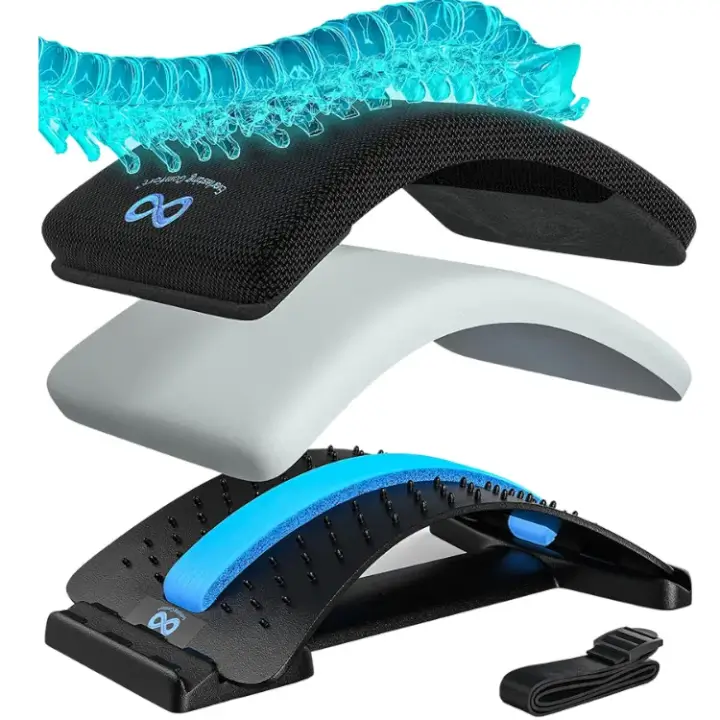 Whether you have back pain associated with sciatica, herniated discs, scoliosis, or from sedentary sitting while working, reducing back pressure and compression can improve the feeling in your back. Our back stretcher features a support arch complete with 88 acupressure nodes, a soft spinal strip to reduce excess pressure, and multiple slots to adjust the angles.