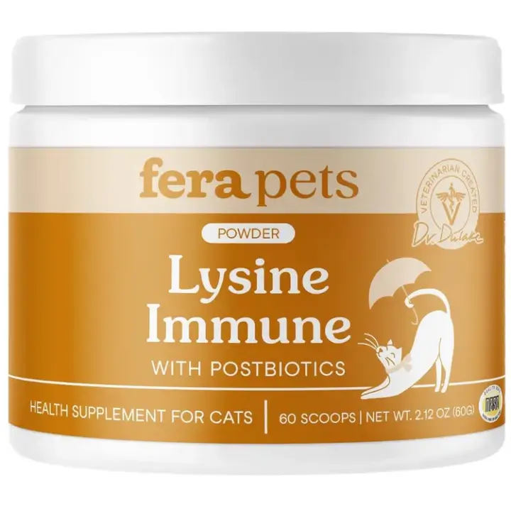 Promote immune health with a natural formula featuring Lysine, postbiotics, and echinacea. High-quality blend supports immune function, eye health, respiratory health, and digestion. Veterinarian formulated, NASC quality seal, made in the USA, and GMP-compliant without colors, dyes, or preservatives. Notice improvements in 4 weeks with this easy-to-use food topper.