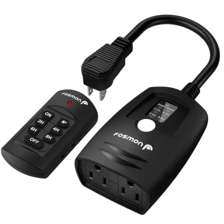 Take control of your devices with our automatic light sensor timer. Set schedules, control remotely with a 100ft RF range, and enjoy reliable use in all weather conditions. Perfect for indoor and outdoor needs, including Christmas lights and garden lights. Heavy-duty, water-resistant, and UL certified for safety. Includes battery and dual outlets.