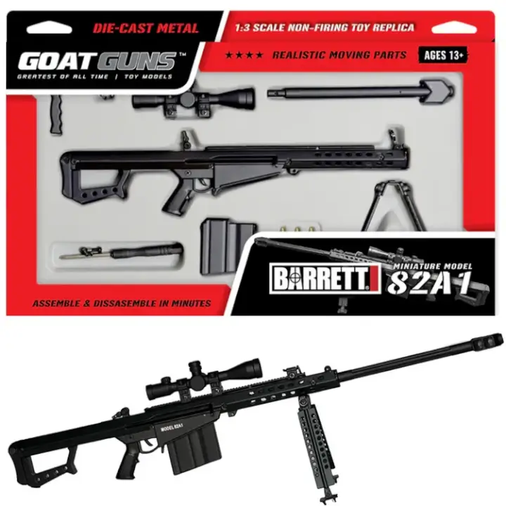 This Small 'n Bad mini sniper is ready to pack a punch! This will get your friends or co-workers talking as it makes a great display item at any desk or shelf. The black mini M82A1 measures in at 13" (33cm) when fully assembled. 'Almighty' weighs a whopping 14 oz, almost 1 full pound! Some assembly required. Takes 5-10 minutes to build. Instructions provided.
