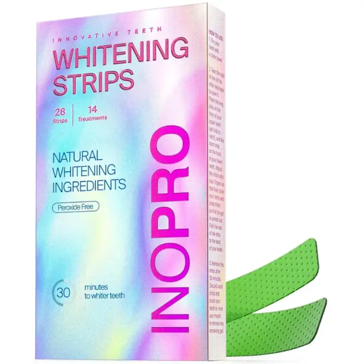 Achieve a brighter smile in just 14 days with zero harsh chemicals. Our transparent Inopro Whitening Strips use only natural ingredients like sea salt, lemon peel oil, coconut oil, papain, and bromelain, which work gently to remove stains without damaging enamel or causing sensitivity. Perfect for those with sensitive teeth who seek effective, natural whitening.