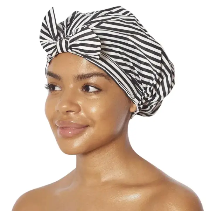 The Luxe Shower Cap allows you to skip a wash day in style. We believe one should never have to sacrifice fashion for function. This is why our chic turban design is perfectly waterproof, comfortable to wear, lasts shower after shower, and beautiful! With elastic at the back and a no-slip silicone grip around the inside, this shower cap is sure to stay put.