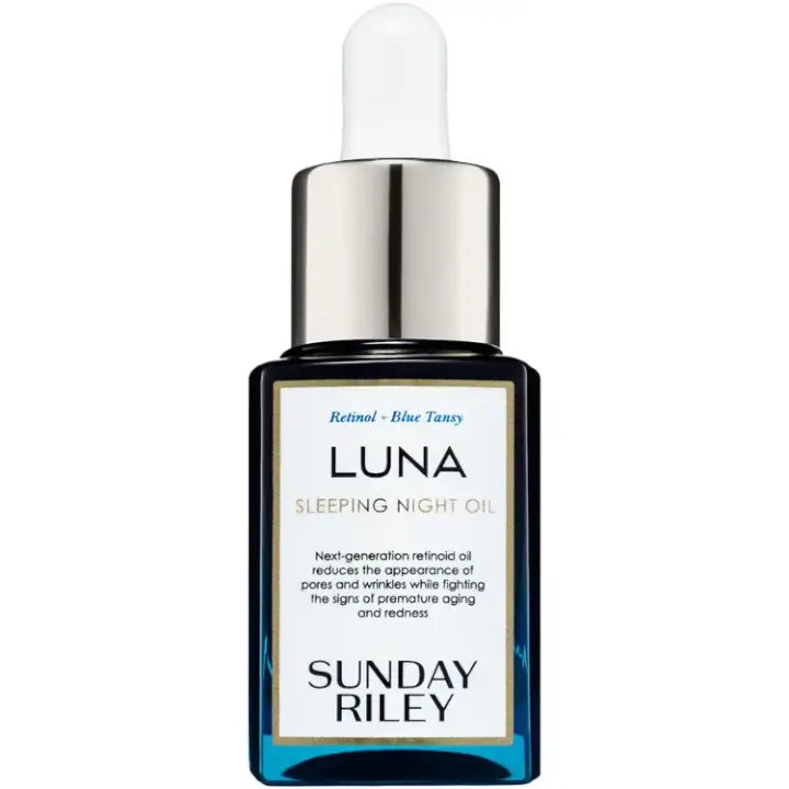 Luna Sleeping Night Oil by Sunday Riley is a retinoid-infused oil that reduces the appearance of pores and wrinkles while enhancing skin texture and radiance. Formulated with blue tansy and German chamomile essential oils, it soothes and balances the skin overnight. Suitable for all skin types, it delivers a smoother, more youthful complexion by morning.