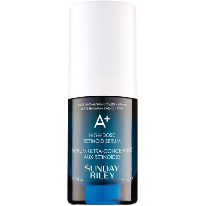 A+ High-Dose Retinoid Serum by Sunday Riley features a potent 6.5% retinoid blend to target aging signs and improve skin texture. Combining encapsulated retinol with CoQ10 and Hawaiian white honey, it reduces fine lines, wrinkles, and dark spots while enhancing radiance. Suitable for all skin types, this advanced serum promotes a youthful, glowing complexion with consistent use.