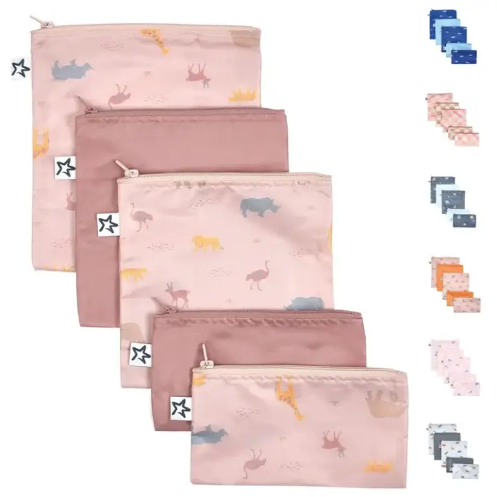 Introducing Tiny Twinkle's reusable snack bags! Made from soft, waterproof fabric using 100% recycled polyester. Easy to clean, safe for kids with OEKO-TEX certification. Various sizes for different snacks. Let your little ones shine with convenience and beauty!