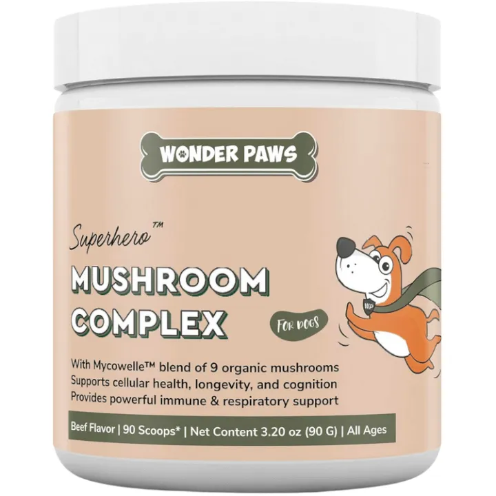 Wonder Paws premium mushroom supplement for dogs uses 9 organic mushrooms to support immune health, respiratory health, cellular health, digestion, cognition, allergy, and overall wellness. Our advanced mushroom powder supplement for dogs uses 9 premium organic mushrooms including turkey tail, shiitake, maitake, reishi, chaga, lions mane, cordyceps, oyster and royal sun mushrooms.
